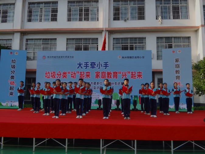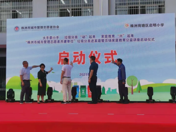 5月14日,“株洲城市管理志愿者共建单位”垃圾分类进家庭暨百场家庭教育公益讲座在启明小学启动。1200多名师生和家长参加了本次活动。